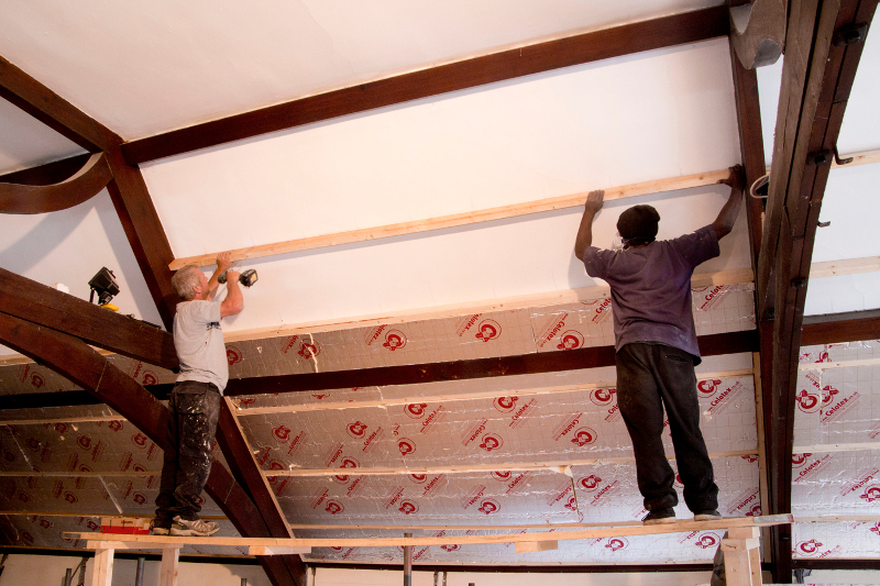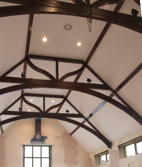 The major insulation and lighting projects were scheduled to take place in the school summer holidays to minimise disruption to Hall users and thanks to efficient project management and the collaborative approach of our contractors all was complete by the start of the Autumn term. Paul O'Brien Ltd undertook the insulation work and Trimby Electrical Ltd the lighting renovation.