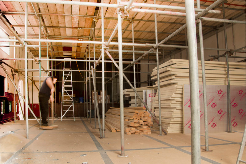 The photographs, taken by David Bax of Backwell Camera Club, illustrate some of the extensive works undertaken. The insulation project for example required the internal scaffolding of all of the hall and the creation of a temporary floor close to the ceiling. This also facilitated the high level work on the lighting.